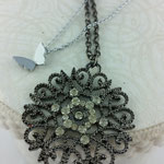 Der andere Schmuck, den wir ausgesucht haben, stellt eine Eisblume dar. Dazu habe ich eine Doppelkette mit kleinem Stein und einer Fee oder einem Engel ausgesucht. Es ist auf alle Fälle etwas, das Flügel hat. Mich erinnert Silber mit Glas immer an eine Eislandschaft, in der alles ruhig und friedlich ist. Ein wenig so, als wäre auch die Zeit eingefroren. Ich hoffe, ihr versteht, was ich meine.